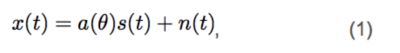 Let's begin with a mathematical model of a uniform linear array. You are given a data vector of IQ-samples for each antenna. Let this vector be called x. Now, a phase shift is seen by each antenna (which can be 0) plus some noise, 𝑛, in the measurements, so 𝑥 can be written as a function of time 𝑡: