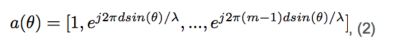 where 𝑑 is the distance between adjacent antennas, 𝜆 is the wavelength of the signal, 𝑚 is the number of elements inthe antenna array, and 𝜃 stands for the angle of arrival. Steering vector (2) describes how signals on each antenna are phase shifted because of the varying distances to the transmitter. By using (1), you can calculate an approximation of the so-called sample covariance matrix, 𝑅xx , by calculating