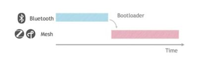 Switched Multiprotocol involves having two separate possible modes running on one chip. Each mode from a protocol and stack point of view is separate from each other. To swap protocols, you have two options: 1) Bootload the firmware image you want that contains the other protocol stack, do the communicating, and then bootload back to the other image, or 2) Have one image that has two modes to completely enable or disable each protocol.One example of this is a connected home device (like a door or window sensor) that only needs Bluetooth to be commissioned to join the network, and then will communicate via Zigbee for a vast majority of its life. To do this, you will ship the part with Bluetooth software programmed or enabled, interact with the user/installer via a phone, and then disable Bluetooth, enable Zigbee and join the Zigbee network. Then, typically the only way to go back to Bluetooth is via a user interrupt, like a button, or to reach out to the node via Zigbee to tell it to swap back to Bluetooth because the device cannot simultaneously remain on the mesh network and hold on to its Bluetooth connection. The time between swapping is very long – in the hundreds of milliseconds for Bluetooth and even longer for Bluetooth mesh.